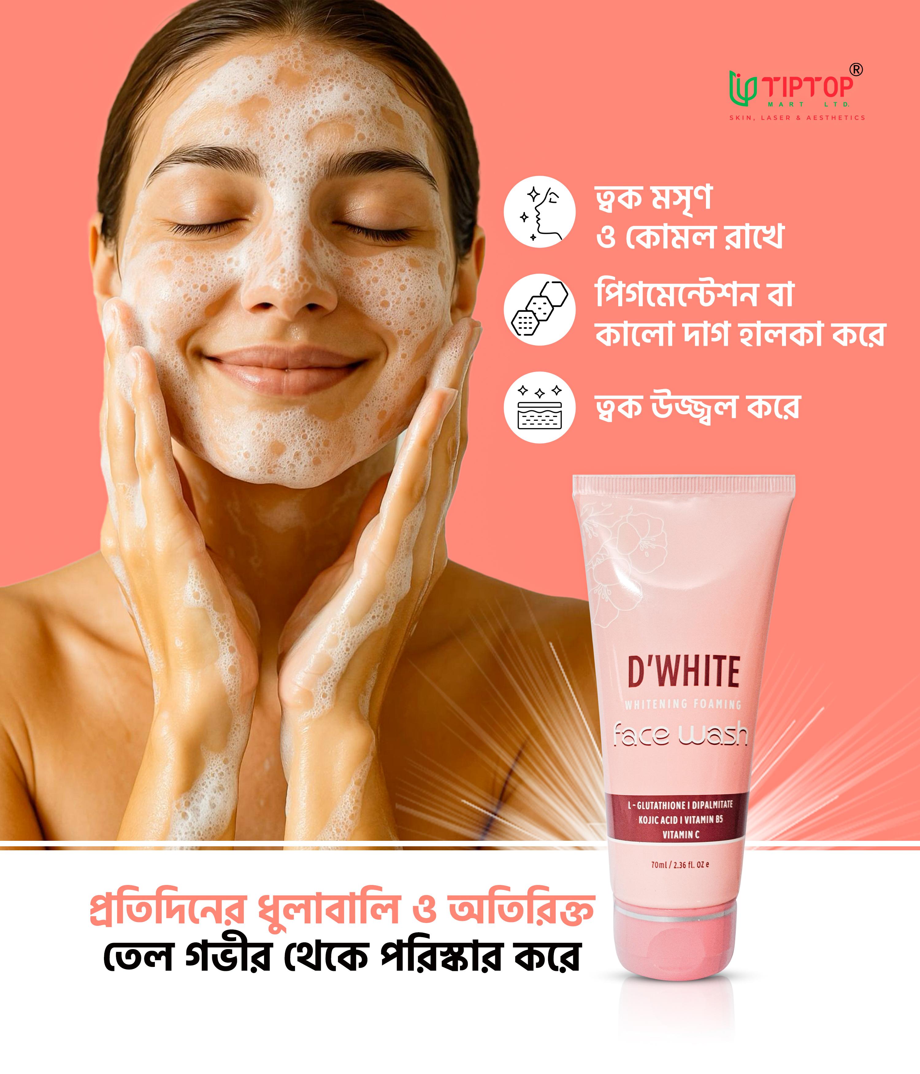 Take a pear-sized portion of D'WHITE whitening face wash with water on your palm. Lather it up and gently massage on your face and neck in circular motion. Rinse off with clean water and pat dry your face. For best results, use twice a day regularly.