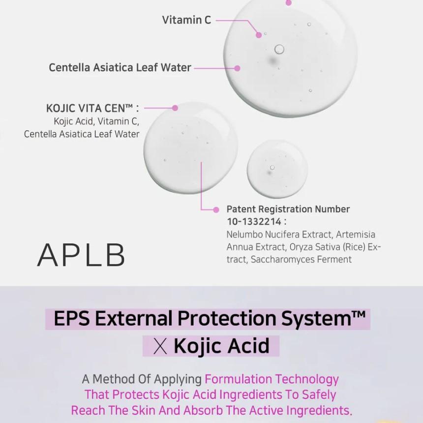 Formulated with 42.2% patented ingredient Kojic Vita Cen™ (containing kojic acid, Vitamin C and centella asiatica), this serum replenishes moisture levels, boosts skin elasticity and revitalizes skin. Hyaluronic acid and beta-glucan in the mix further moisturizes skin and strengthens its barrier. Fragrance-free formula is suitable for sensitive skin.