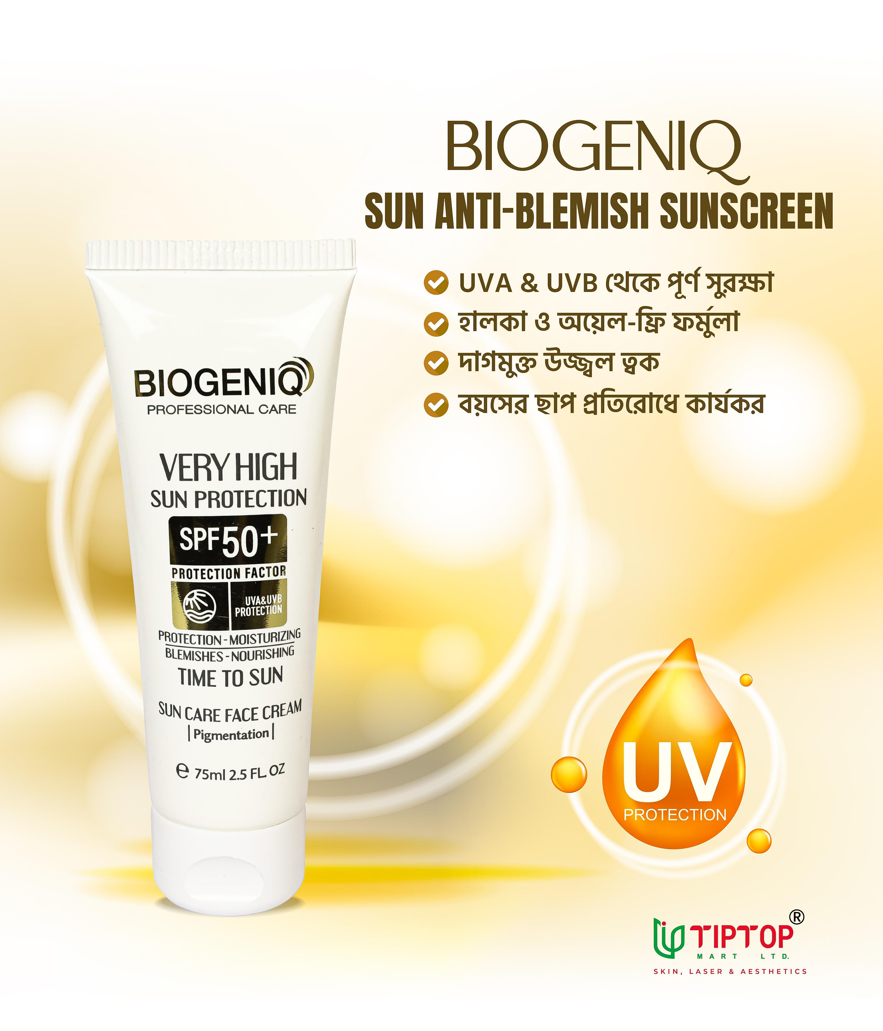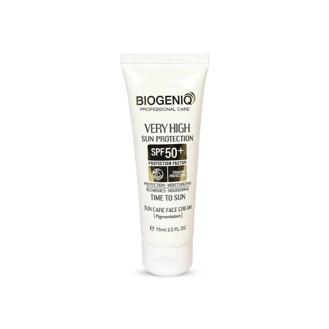 BIOGENIQ Sun Care SPF 50+ For Pigmentation, Face Cream is a new generation skin care product that provides protection against, UVB and UVA rays and contains broad spectrum filters. Does not leave a white residue on your skin. It is recommended to apply at least 20-30 minutes before sun exposure. Do not stay in the sun too long even when using a sunscreen. Too much exposure to the sun is a serious health threat. Sunscreen products do not offer 100% protection. The product must be re-used if staying in the sun too long. Do not apply the product around ound the eyes. Avoid contact with eyes. Please note that the effectiveness of sunscreen creams depend on the amount correct use of the product. Reducing the amount to be applied applied will signih cantly reduce the level of protection.