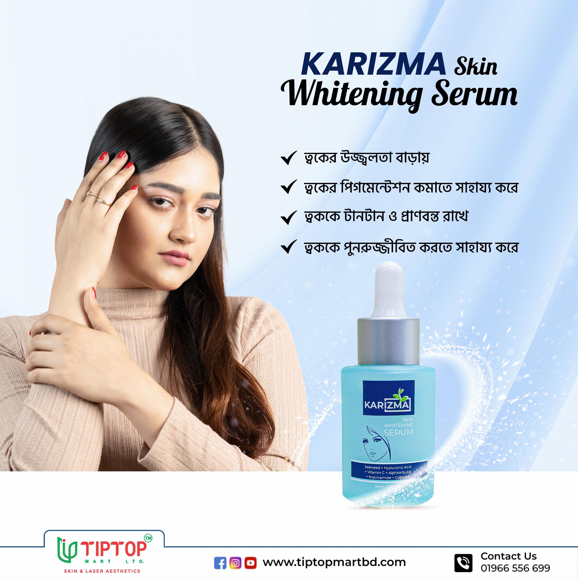 After cleansing your face, apply a small amount of the KARIZMA SERUM to your fingertips. Gently spread the serum evenly over your face, focusing on areas with pigmentation or uneven skin tone. Massage it into your skin using upward motions until fully absorbed. Use the KARIZMA SERUM as directed by the product label or your dermatologist, and always follow with a moisturizer and sunscreen during the day for the best results and sun protection.